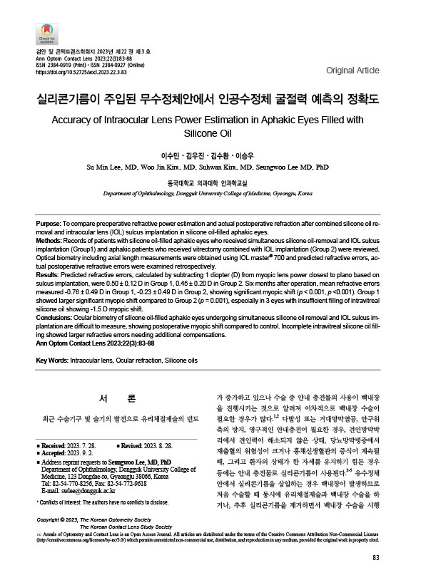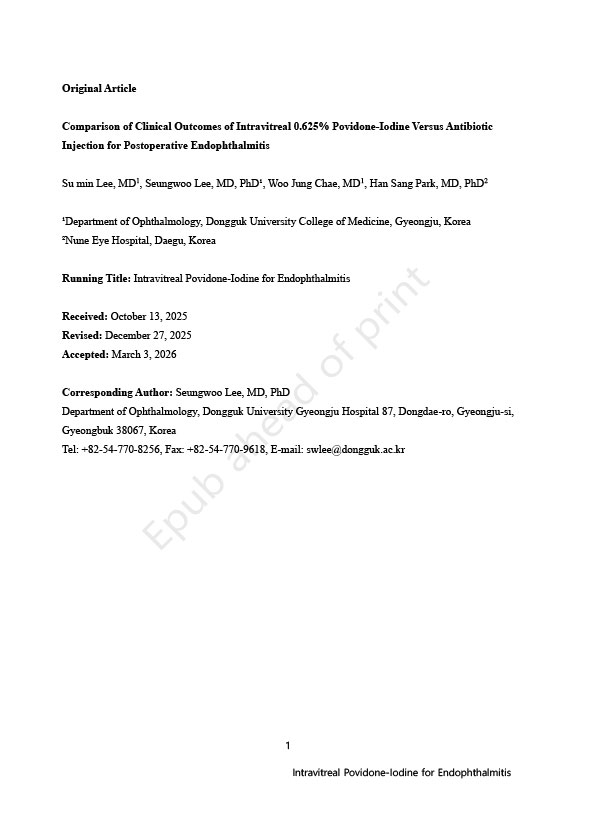 SCI 논문 British Journal of Ophthalmology : Comparison of subjective and objective torsion in patients with acquired unilateral superior oblique muscle palsy, 제 1 저자 노영래 (교신저자 : 분당서울대병원 소아안과 황정민 교수님)
