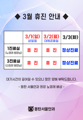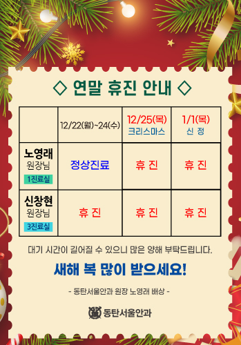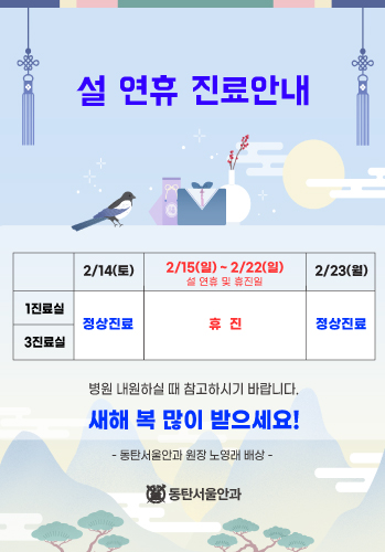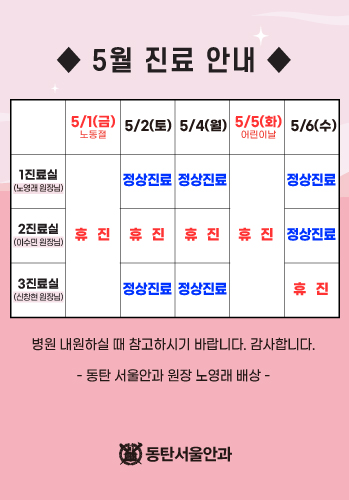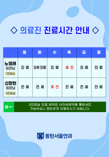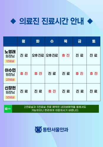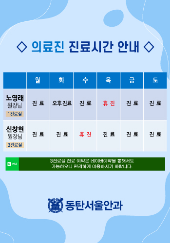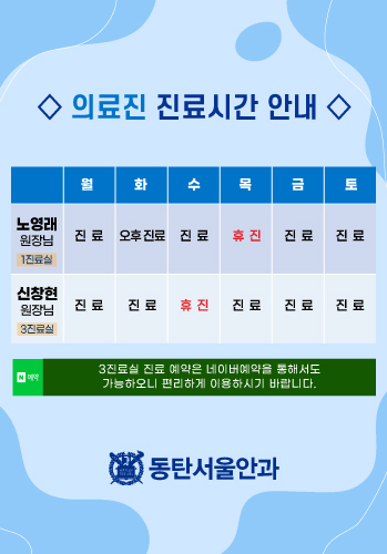 | 휴진안내 | 일요일 / 공휴일은 휴진입니다. | |||