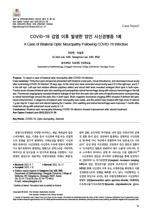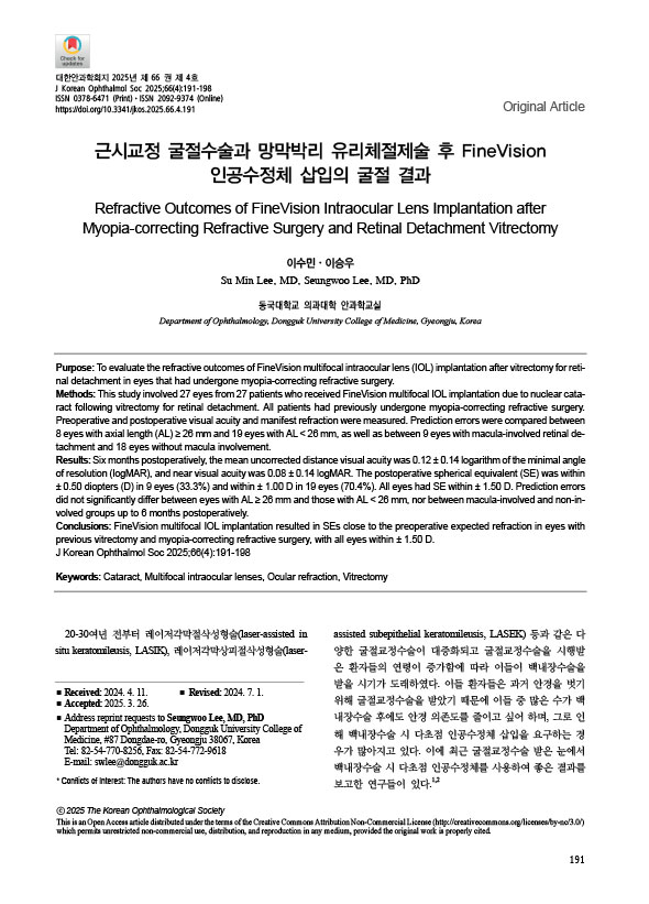 SCI 논문 British Journal of Ophthalmology : Comparison of subjective and objective torsion in patients with acquired unilateral superior oblique muscle palsy, 제 1 저자 노영래 (교신저자 : 분당서울대병원 소아안과 황정민 교수님)